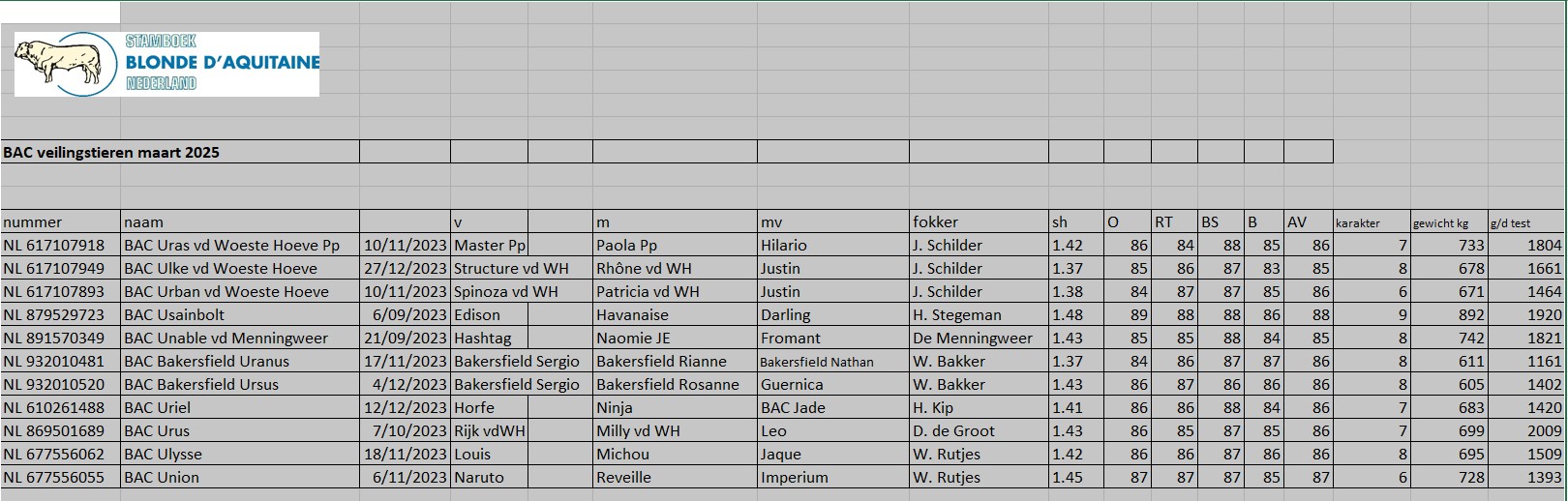 Aanbod blondestieren op BAC-veiling