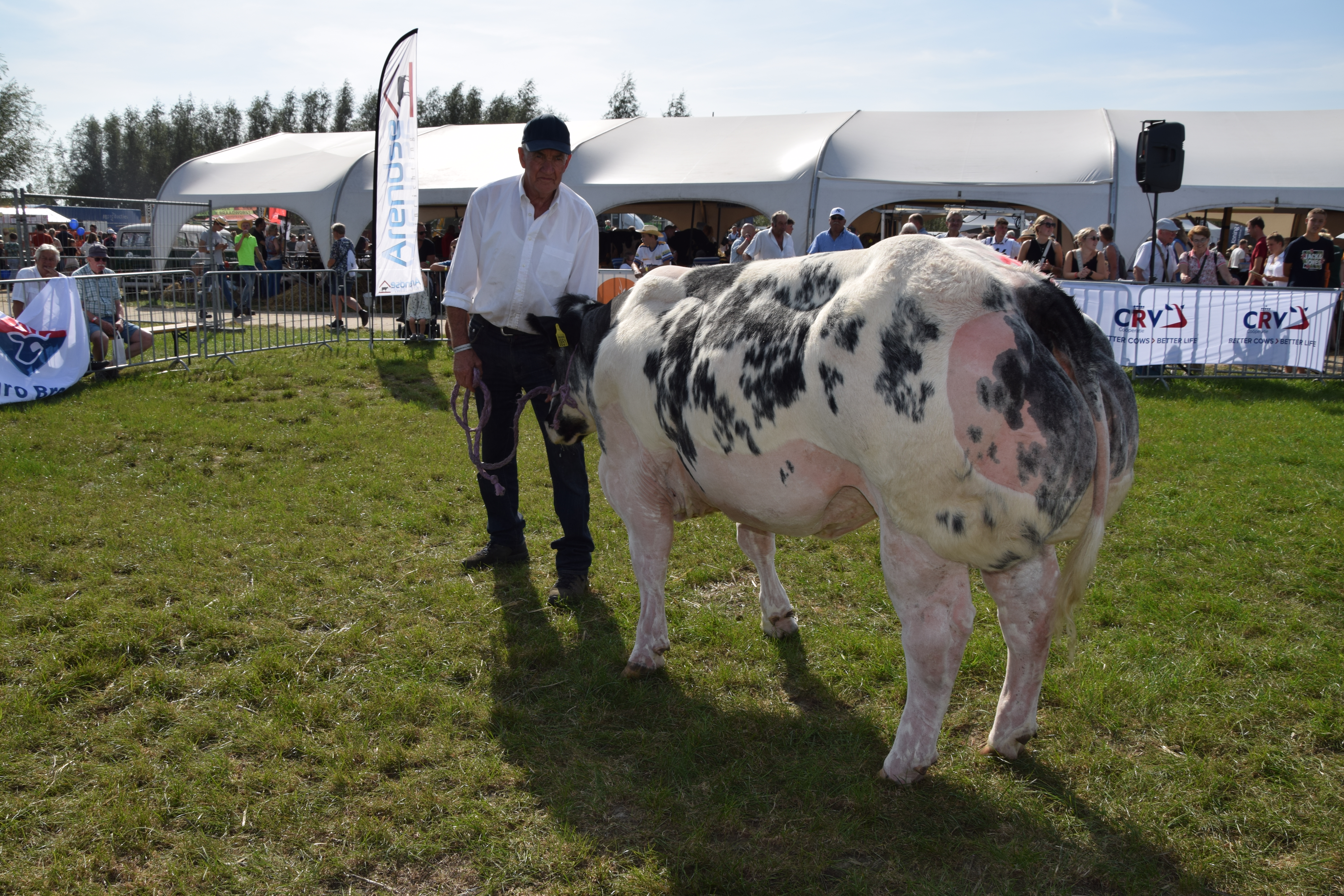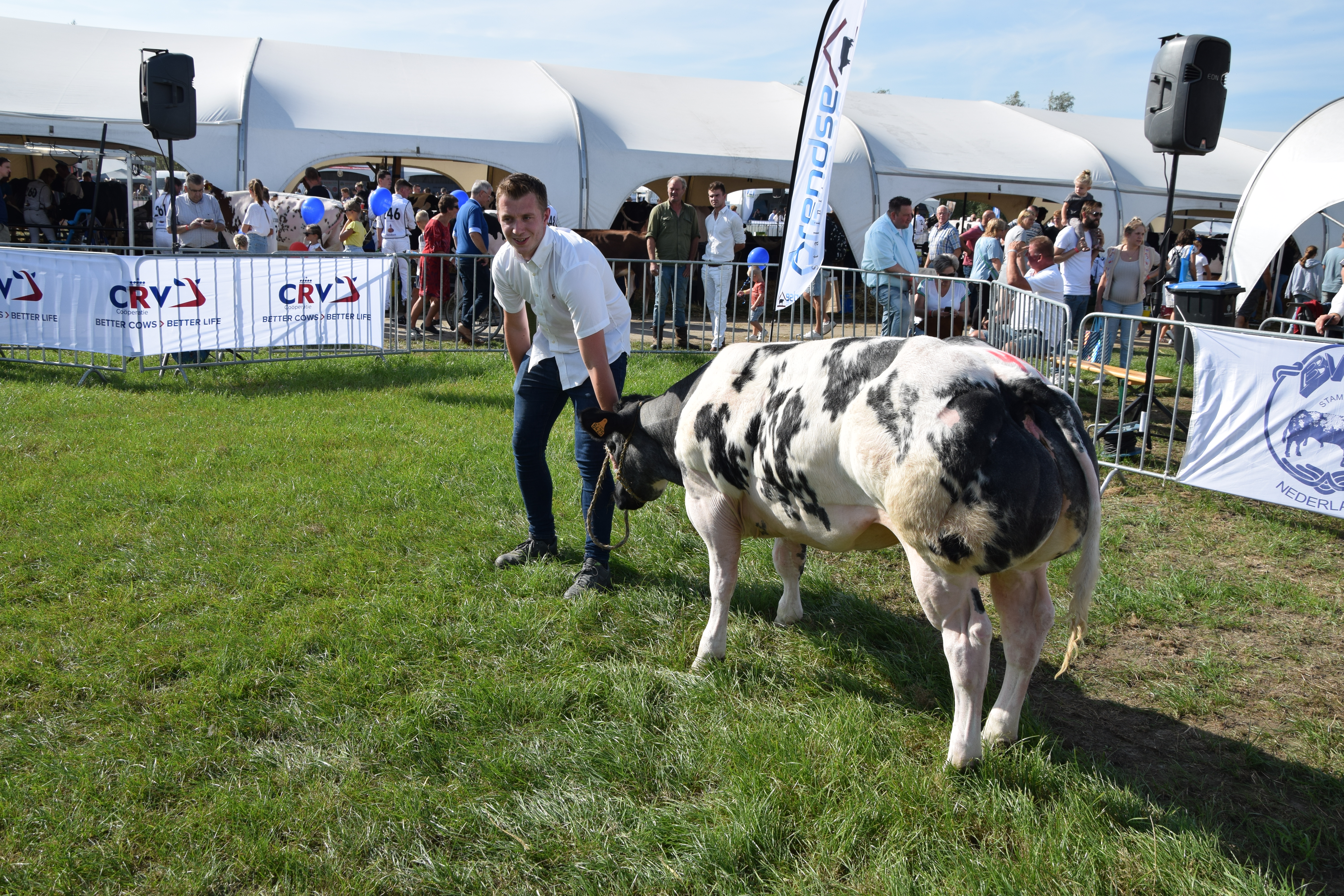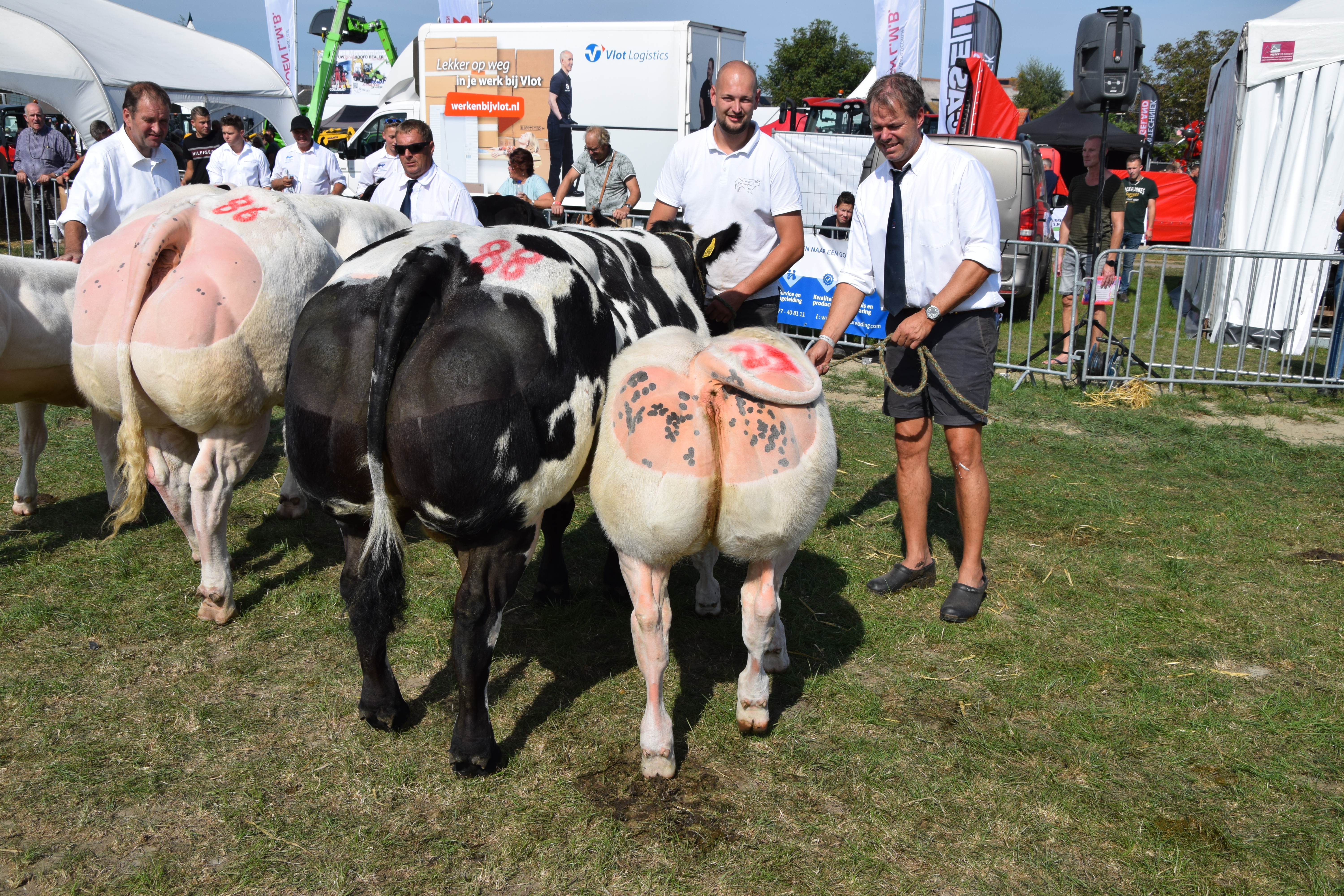 Fokkerij 18 sep 2023 Foto: Nationale Bwb-prijskamp, Hoornaar Alle rubriekswinnaar en kampioenen van de nationale keuring Belgisch witblauw in Hoornaar (2023). Kampioenen mannelijk kampioen vrouwelijk