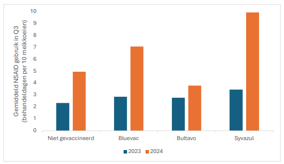 Op bedrijven die vaccineerden met het blauwtongvaccin Bultavo van Boehringer Ingelheim, werd in 2024 een kleinere verhoging van het gebruik van ontstekingsremmende pijnstillers gevonden dan op bedrijven die niet vaccineerden of vaccineerden met een van de andere vaccins.